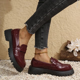 Women's Comfortable Casual Slip-On Loafers Thick Bottom Flat Shoes round Toe Rubber Sole Winter Solid Color Adult Footwear